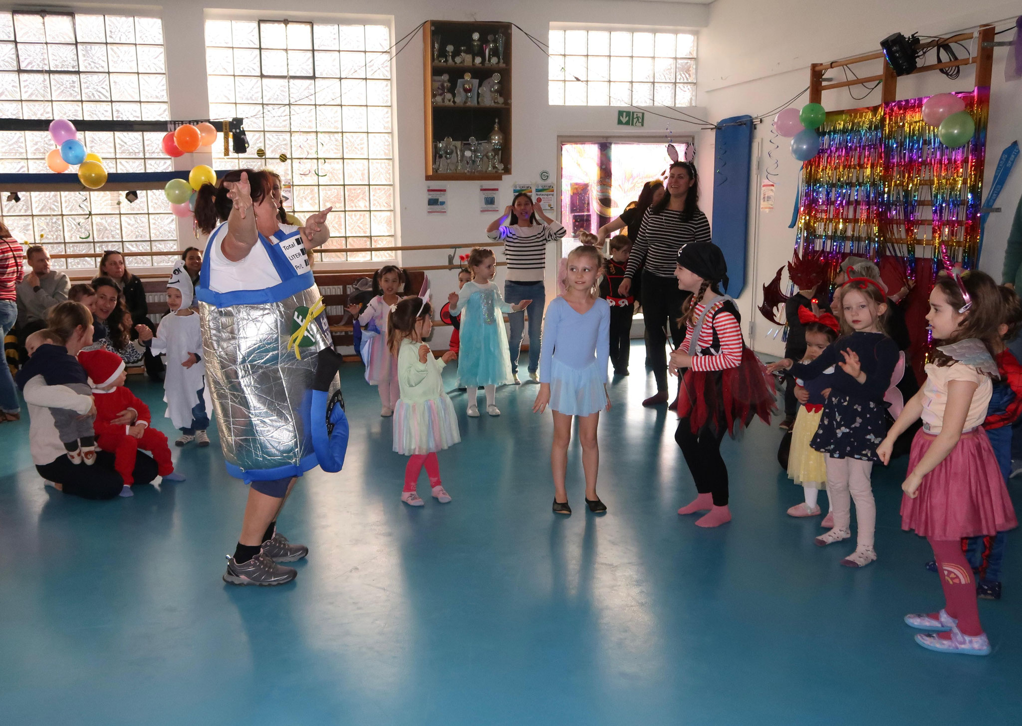 Um 15.30 Uhr ging es los mit einer Polonaise, gefolgt von vielen lustigen Spielen wie Limbotanz, und verschiedenen Wettbewerben, die mit Süßigkeiten belohnt wurden. Unter anderem gab es Sackhüpfen und Huckepackrennen, bei denen auch die Eltern mitmachen durften. Natürlich lief immer passende Musik mit Tänzen zum Fliegerlied, Macarena, Cowboy und Indianer, Bopplied und vielem mehr. Alle hatten viel Spaß, es wurde viel gelacht und der Fasching war bunter denn je. Am Abend waren dann die Erwachsenen an der Reihe und durften beim Erwachsenenfasching feiern.