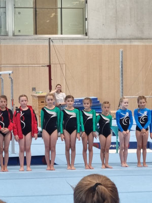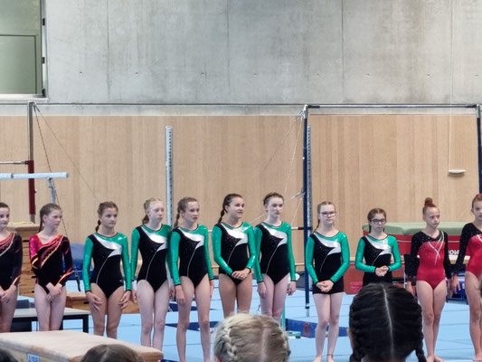 Die jüngeren Mädels von Thea, die gleichzeitig in der Liga 2-Jugend D turnten, waren sehr fleißig und ergatterten den zweiten Platz. Durch gegenseitiges Motivieren haben wir alles in allem sehr zufriedenstellende Leistungen erbracht und haben dabei unseren Spaß gehabt. Die Freude beim Vorturnen hat man uns hoffentlich angesehen.
