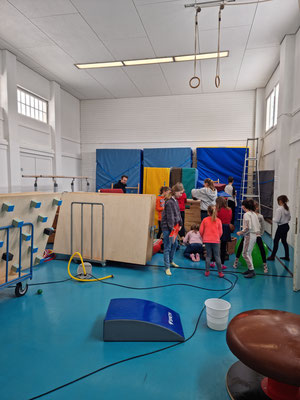 Vormittags ab 8.15 Uhr starteten fleißige starke Eltern mit Trainerinnen und Co-Trainerinnnen den Aufbau und die Organisation alle Geräte in die Judohalle zu tragen. Ab 9 Uhr fanden alle Generalproben der verschiedenen Gruppen statt.