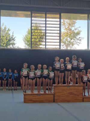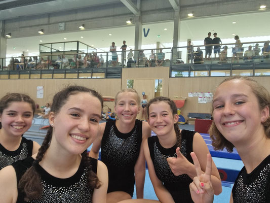Nach einer langen Pause war es endlich wieder so weit: am 16. Juli konnten wir-die Turnerinnen der Turngruppe von Bine- unsere Übungen in einem Mannschaftswettkampf der Liga 3-Jugend A/B präsentieren. Trotz langer Wartezeit und zahlreichen Rückfällen während des Lockdowns erreichten wir mit 233,10 Punkten den 5ten Platz. Wir hatten die Chance unser lang Erprobtes am Stufenbarren, Boden, Schwebebalken und Sprung vorzustellen. Besonders erfolgreich lief es am Sprung, den wir mit unserer höchsten Punktzahl abschließen konnten und am Balken, an dem wir fünf vollständige Übungen ohne Sturz turnten. Vieles davon erreichten wir durch die Unterstützung unserer Trainerin Bine, die bei (fast) jedem Training da war, geholfen hat, wo sie konnte, uns bei neuen Übungen ermutigte und auch in den etwas schwereren Zeiten positiv gestimmt war und uns zum Lachen bringen konnte.